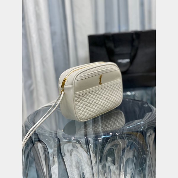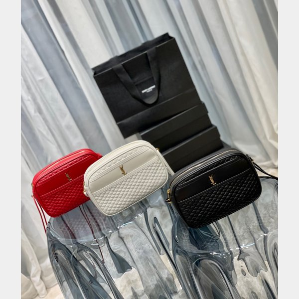 Saint Laurent Monogram bolsas de hombro con una correa de cuero de cadena duplicada, decorado con iniciales de metal YSL y Mini Carré Carretitching, un mínimo, una mínima. Un bolsillo zip