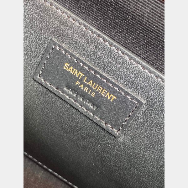 Saint Laurent-bolsasbossed bolsas con pestañas de compresión en lados, manijas de cuero y correa de hombro ajustable.